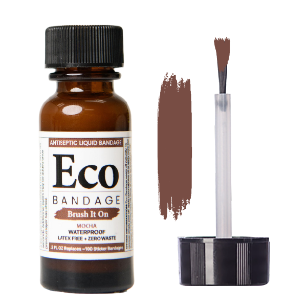 Eco Bandage is a revolutionary waterproof liquid bandage that seals, heals & conceals wounds completely and kills 99.9% of germs with its antiseptic formula. The biodegradable, latex & dye-free brush-on bandage naturally disappears as the wound heals. 1 bottle of Eco Bandage is equivalent to over 100 sticker bandages, making it a great alternative to traditional bandages that contribute to ocean & landfill pollution. Use Eco Bandage to cover minor cuts, scrapes, scabs, blisters, pimples, burns & scars. It's easy to apply and dries quickly. The antiseptic prevents infection while the waterproof barrier keeps moisture out allowing the wound to heal. Reapply as needed without creating more trash:) Our biodegradable liquid bandage is safe for kids and adults.